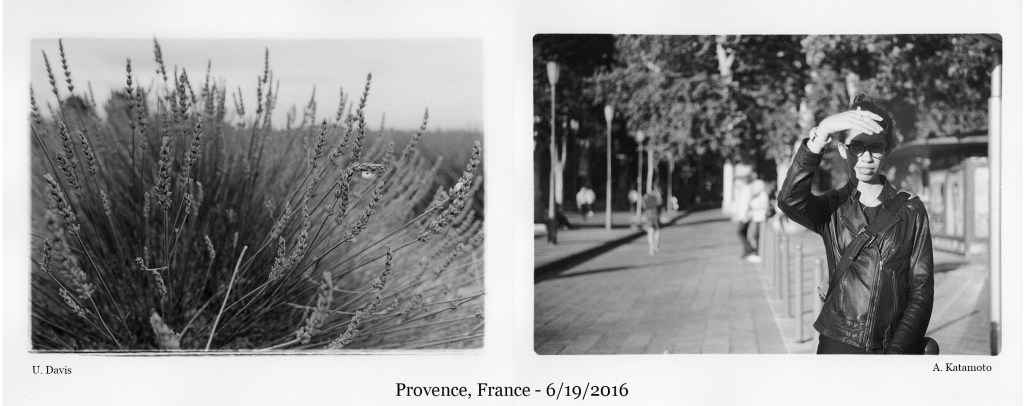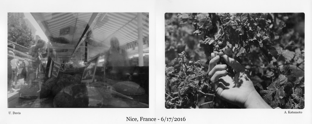 Examining the results of their 3-4 dozen rolls of film, Davis and Katamoto created a series of diptychs, one photograph from Davis and one from Katamoto, using time and place to unite their images. Pairing up photographs taken on the same day – some taken in the same location – to reflect on how one’s individual point of view changes how we see and interact with the world.